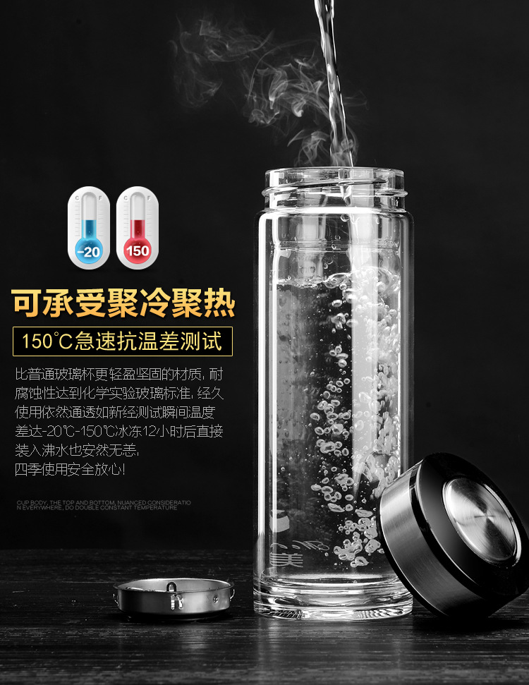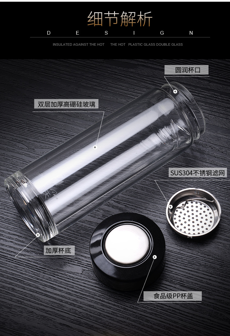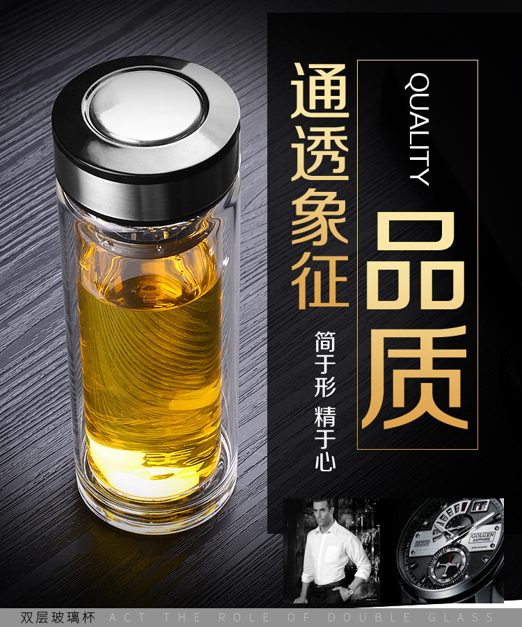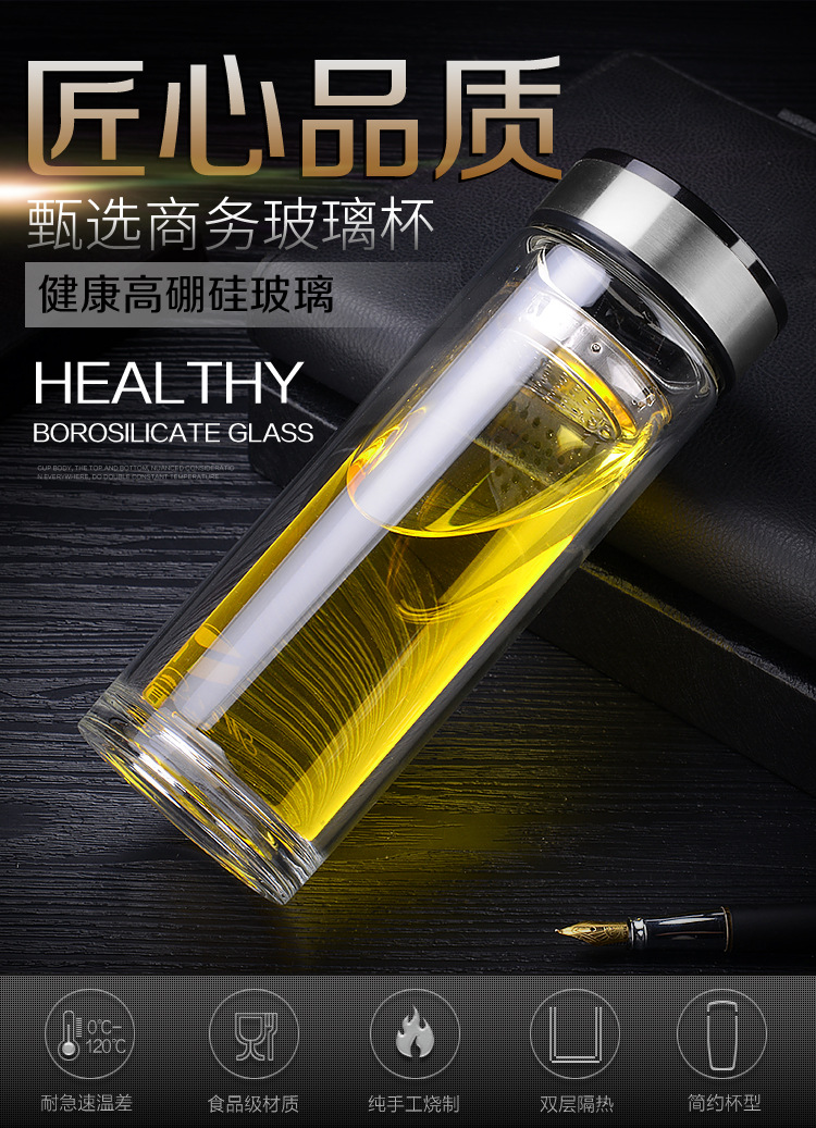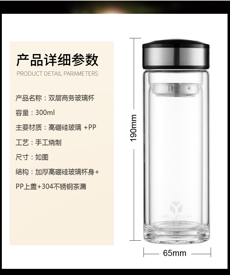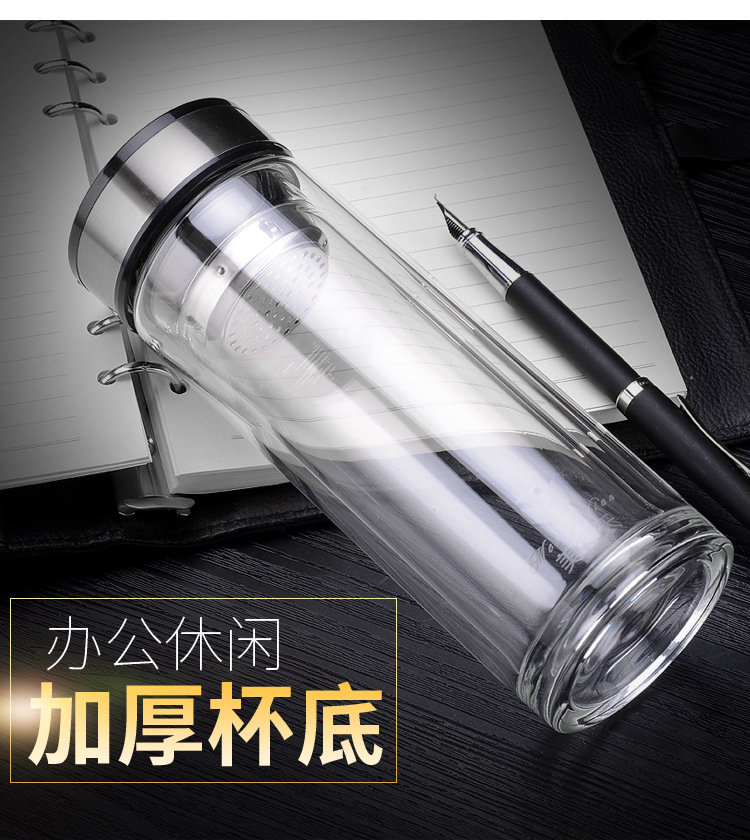 雙層厚底透明玻璃杯商務禮品高硼硅水杯廣告杯批發定制logo