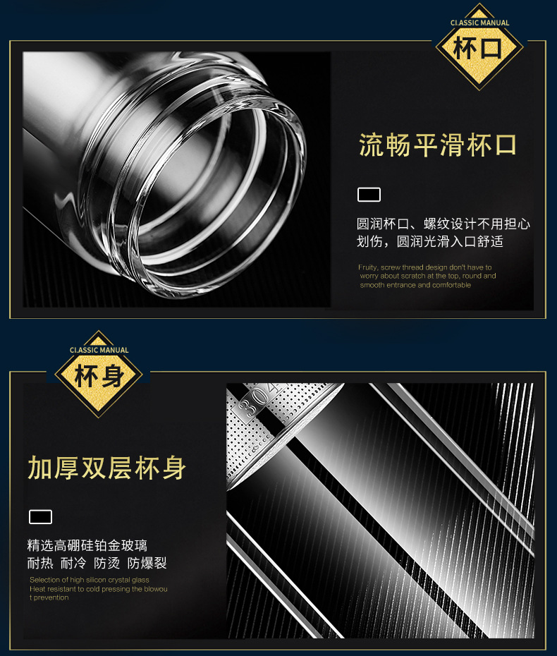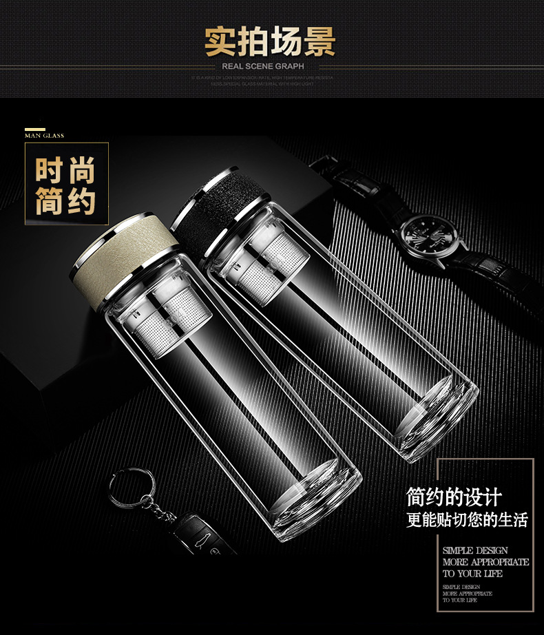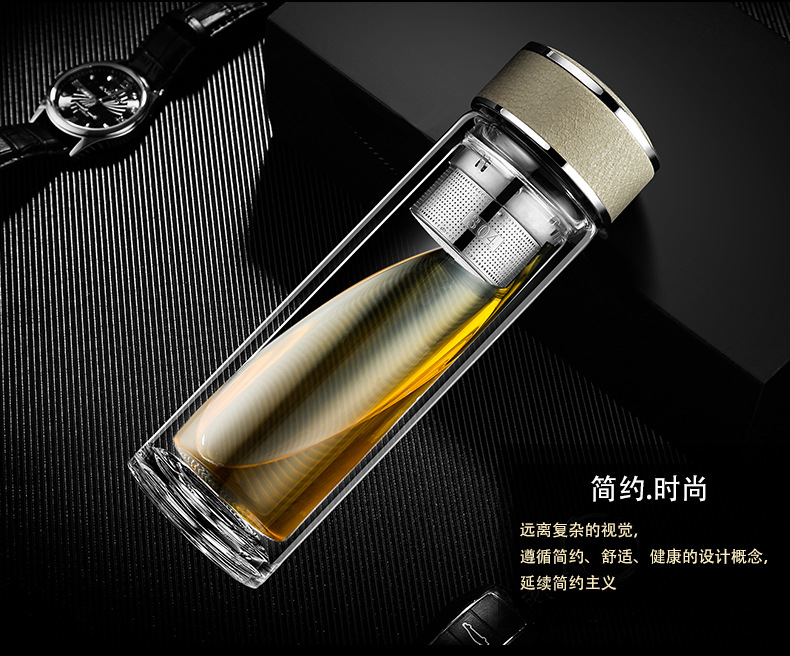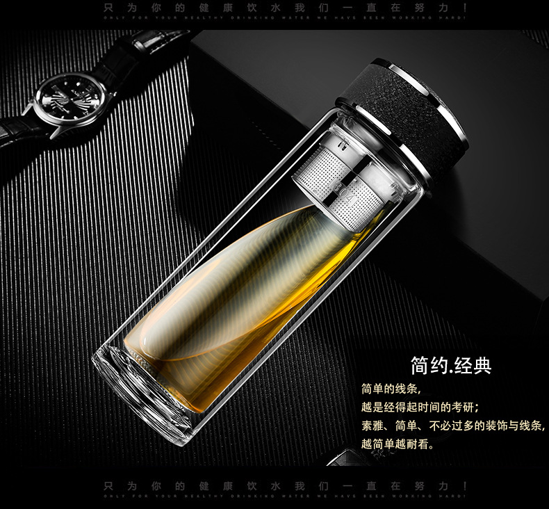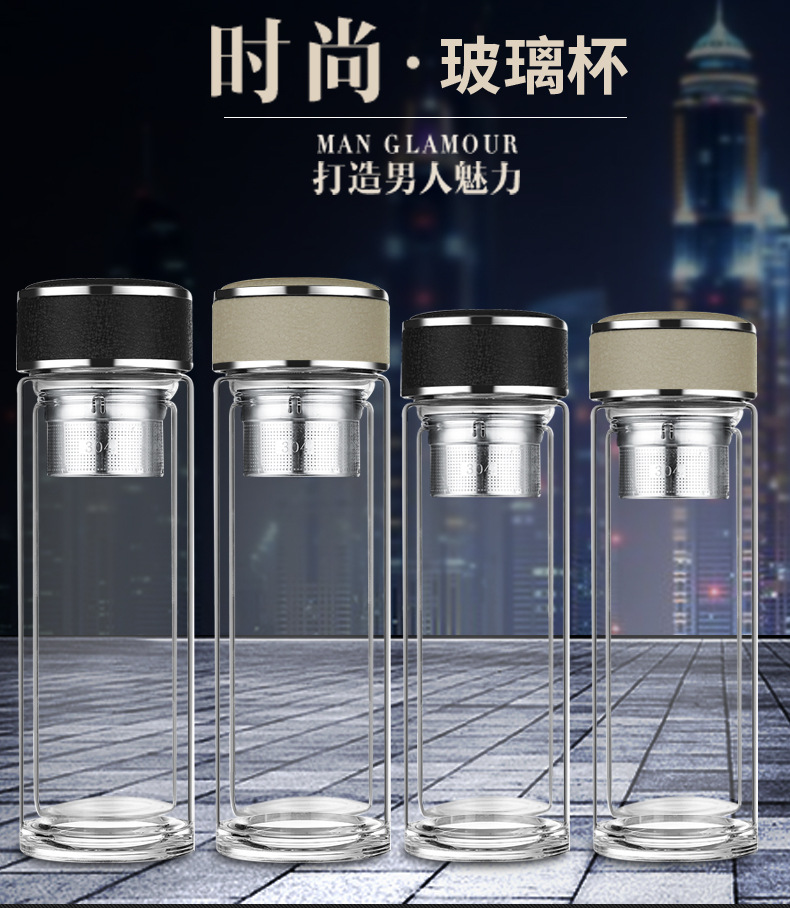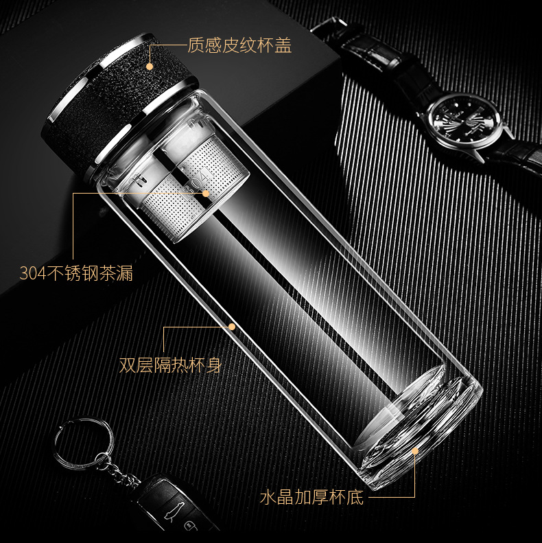 廠家直銷新款創(chuàng)意高端商務雙層玻璃杯帶濾網(wǎng)辦公水杯定制