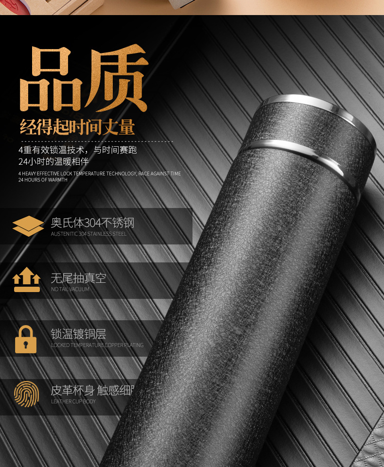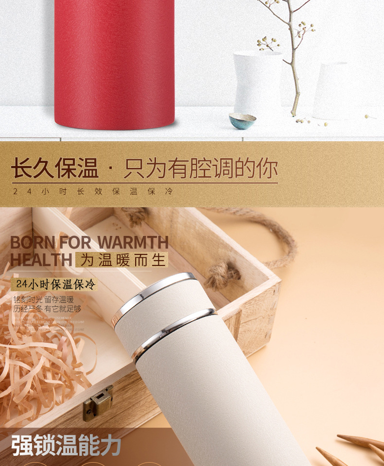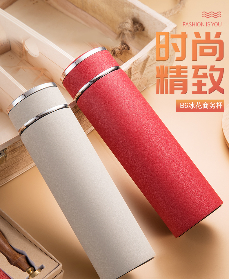 不銹鋼保溫杯冰花烤漆水杯廣告禮品定制杯子帶濾網印字