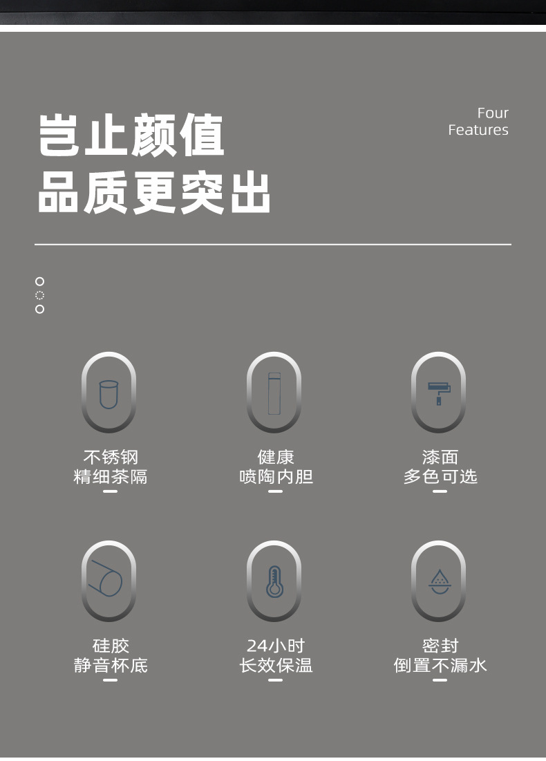不銹鋼茶水分離杯泡茶杯噴陶內膽保溫杯 商務男士禮品水杯子500ml