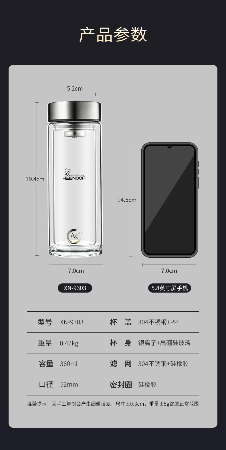 希諾雙層玻璃杯男女士家用高檔抗菌泡茶車載水杯隔熱茶杯透明杯子