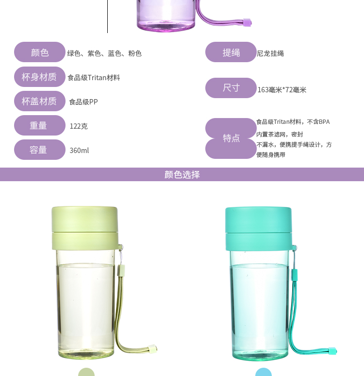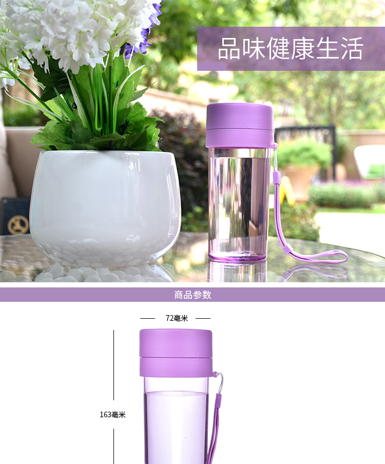 塑料杯子防漏 學(xué)生水杯帶茶隔 運(yùn)動(dòng)水杯trian材質(zhì) 隨身杯帶提繩360ml